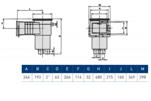 Skimmer, Otvor 215 x 160 mm, Za Foliju. S mesinganim umetcima