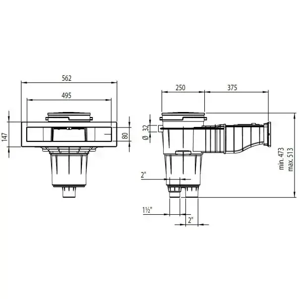 Skimmer VA 150 x 150 mm, sa maskom za vijke, za foliju, spoj 1. 5"
